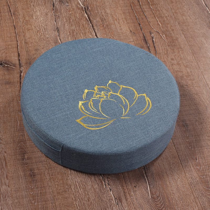 Embroidered Linen Lotus Meditation Cushion – Komfortabel & Stilvoll