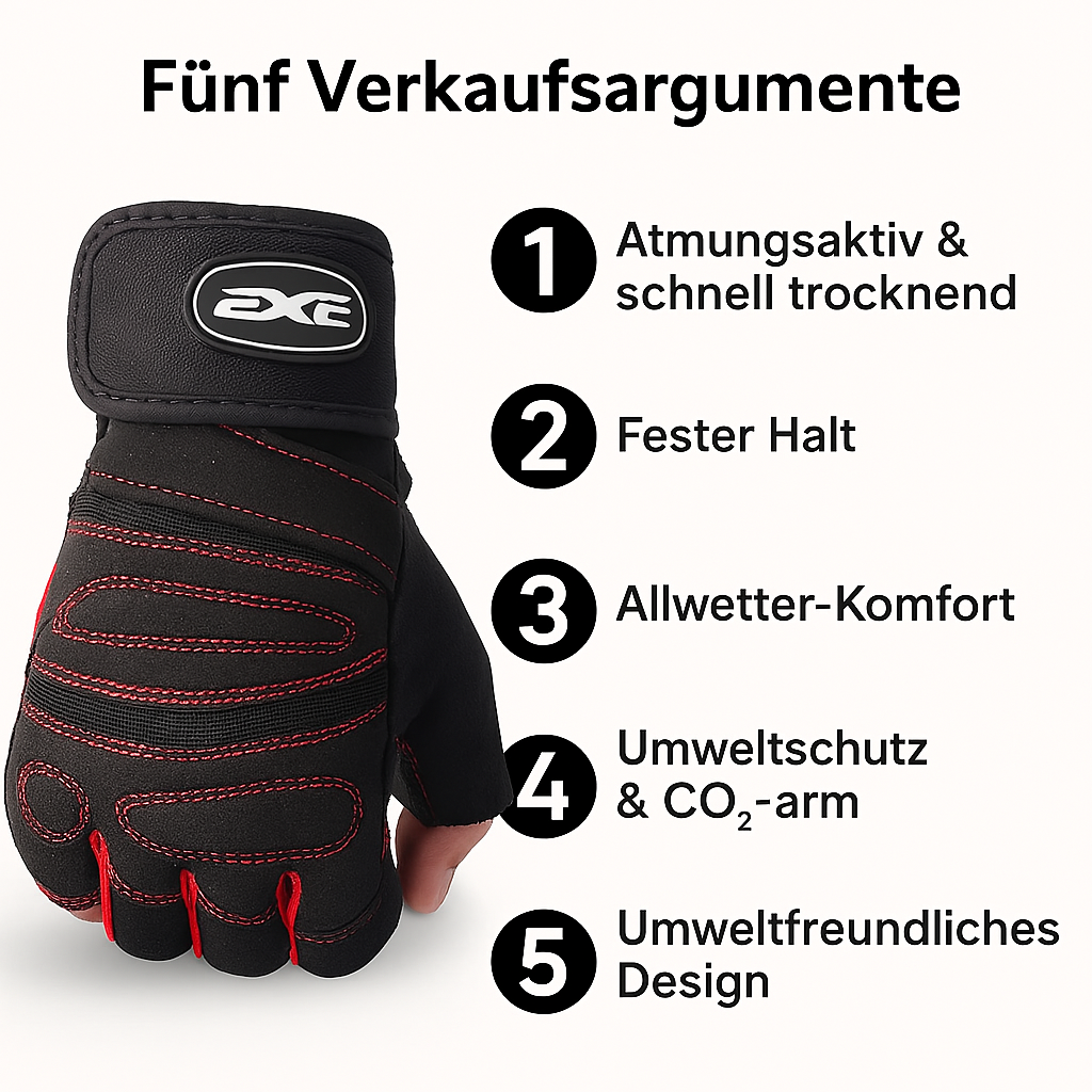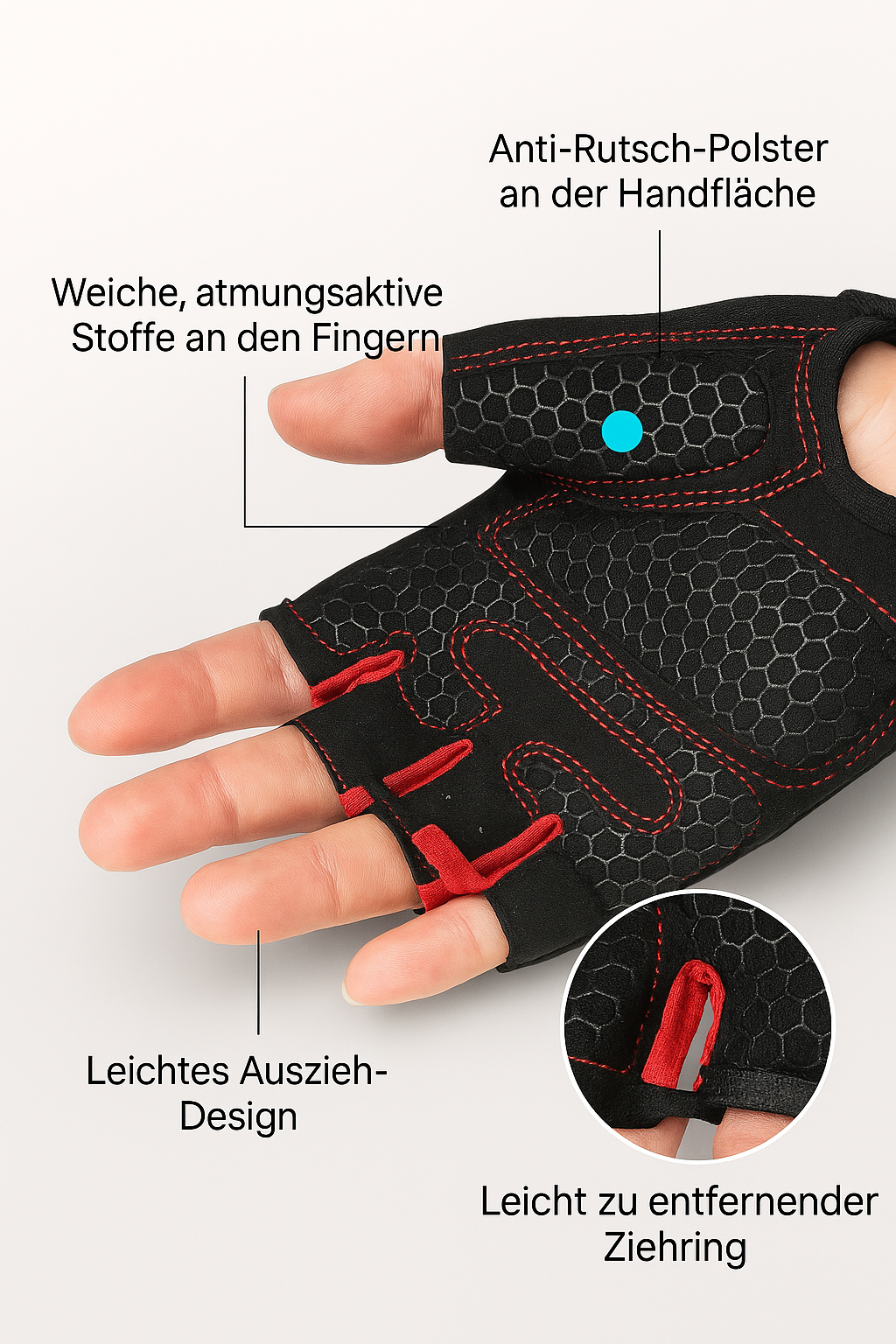 🖐️ Rutschfester Halt: Innovative, rutschfeste Handflächen sorgen für sicheren Griff bei allen sportlichen Aktivitäten.