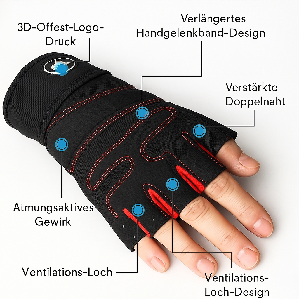 ✔️ Sicherer, rutschfester Griff ✔️ Schutz des Handgelenks bei intensivem Training ✔️ Maximale Atmungsaktivität und Komfort ✔️ Pflegeleicht & langlebig